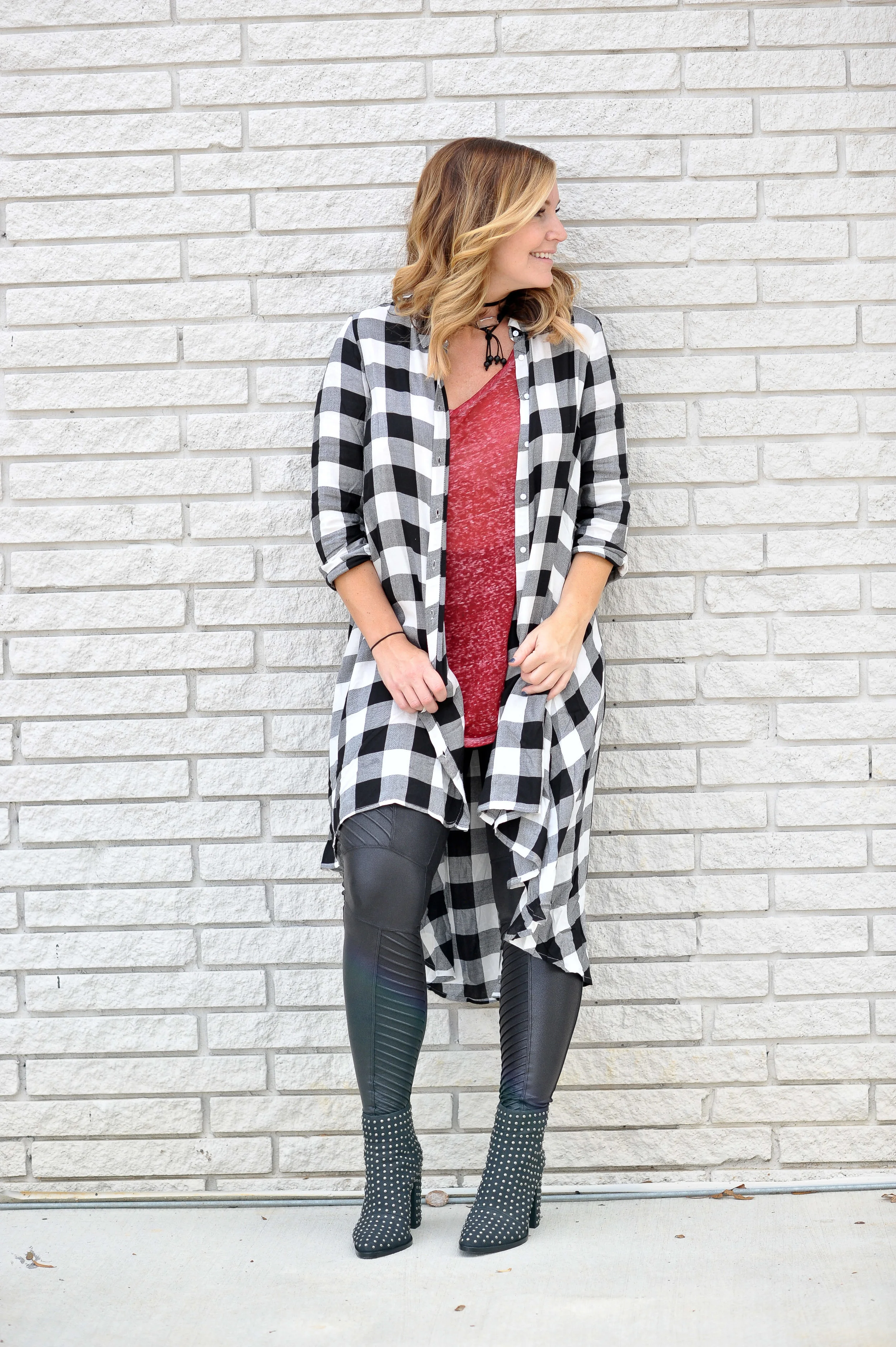 spanx moto leggings | z supply tee (these are also great and only $17!) | asos plaid tunic | mercer edit booties (similar here) | rebecca minkoff backpack | photos by jnelly photography